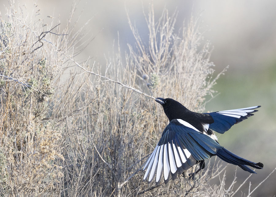 Just over three weeks ago, when the Black-billed Magpies I’ve been following this spring on Antelope Island were still adding to their nest, I happened to catch the male of the pair trying to carry an unusually long stick. I’ve seen various magpies carrying many hundreds of twigs and sticks to their nests but this one might be the longest one of all.