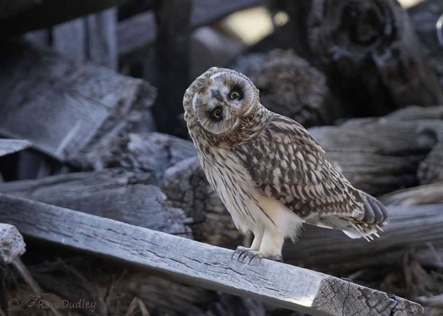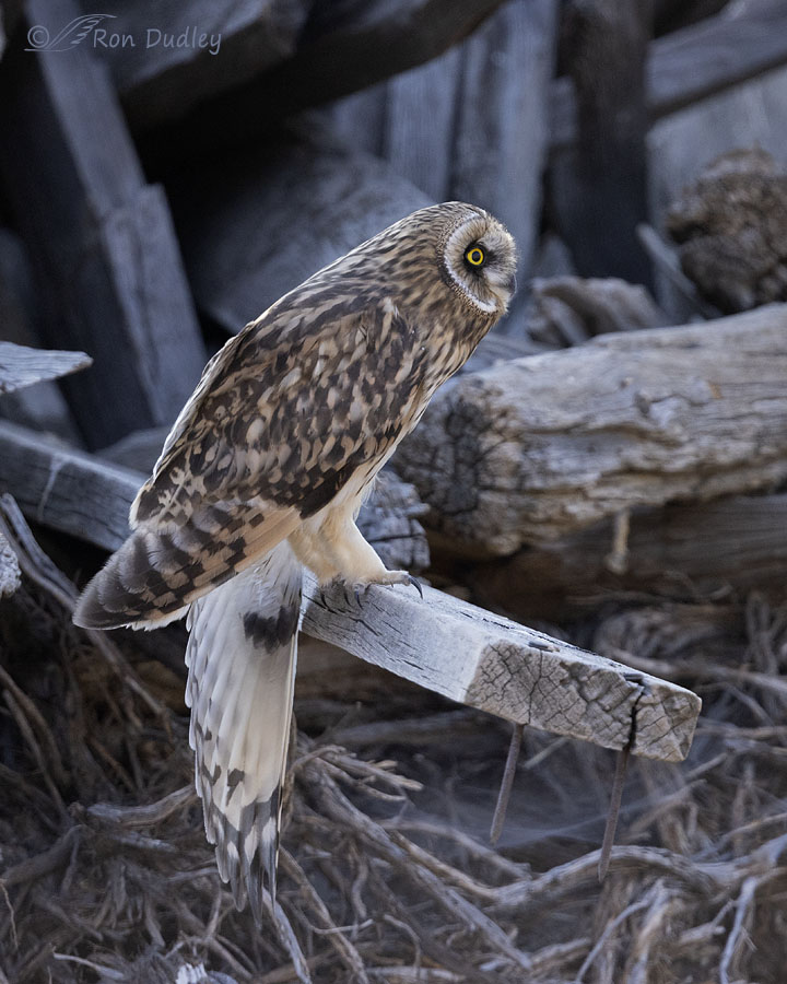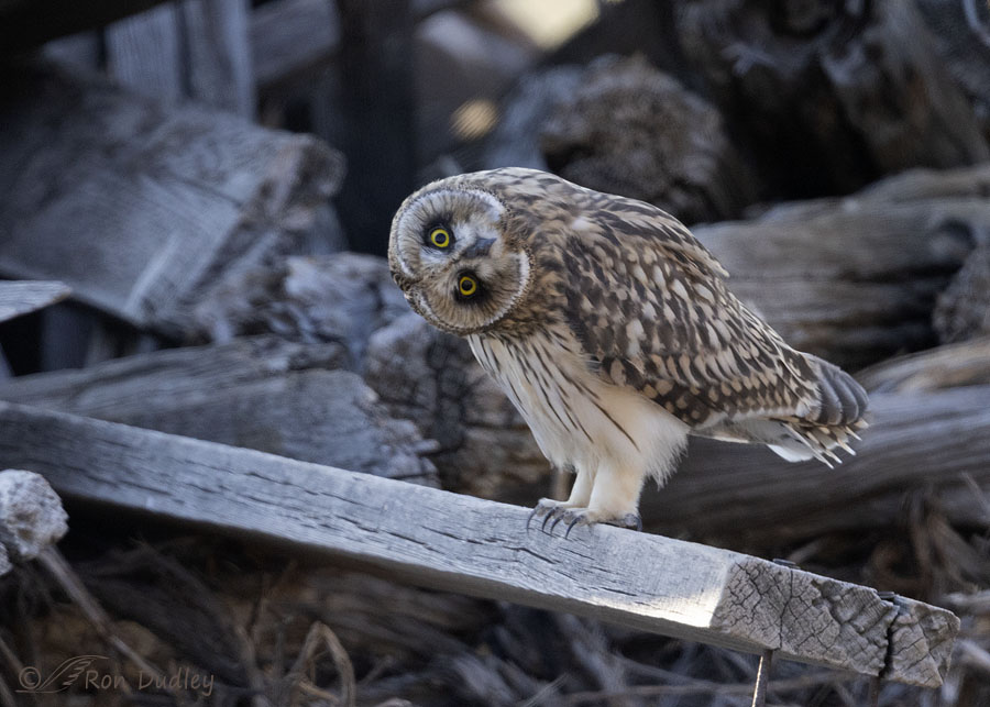 Must be a “prime location” for SEO’s…….. Wonderful series, Ron….. 🙂 Noted a tangle of wire in the wood pile he was sitting in. Rotating the image does give a different perspective. Have seen fledgling GHO’s in pretty much that position when they screwed up tho, of course, they weren’t exactly that “relaxed….. 😉