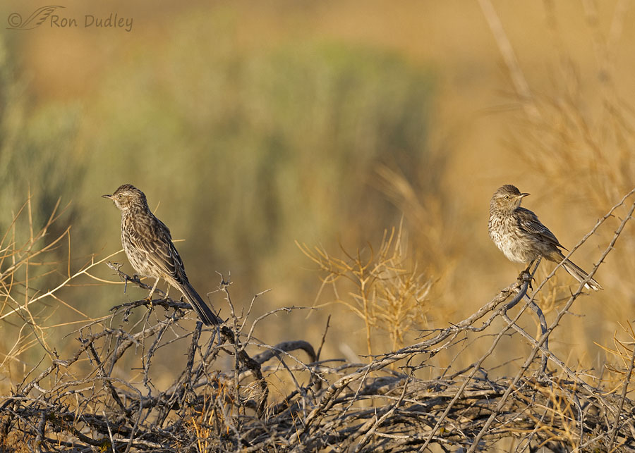 Sage Thrashers awash in gold on their titular perch. A classic image. Like Janus, one looking forward in time and one back at the Great Salt Lake. “I’ll take the old days.” says one. The one looking to the future says, “But the people and their politicians are forming committees and allocating millions of dollars to save it.” They look at each other from bookended perches and know that someday photos like this will be proof that they and the other creatures were ever here.