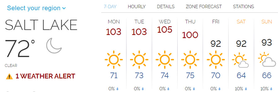 Hot temps for sure, but you would get no sympathy or empathy from my relatives and friends in Yuma, Tucson, and Lake Havasu City.