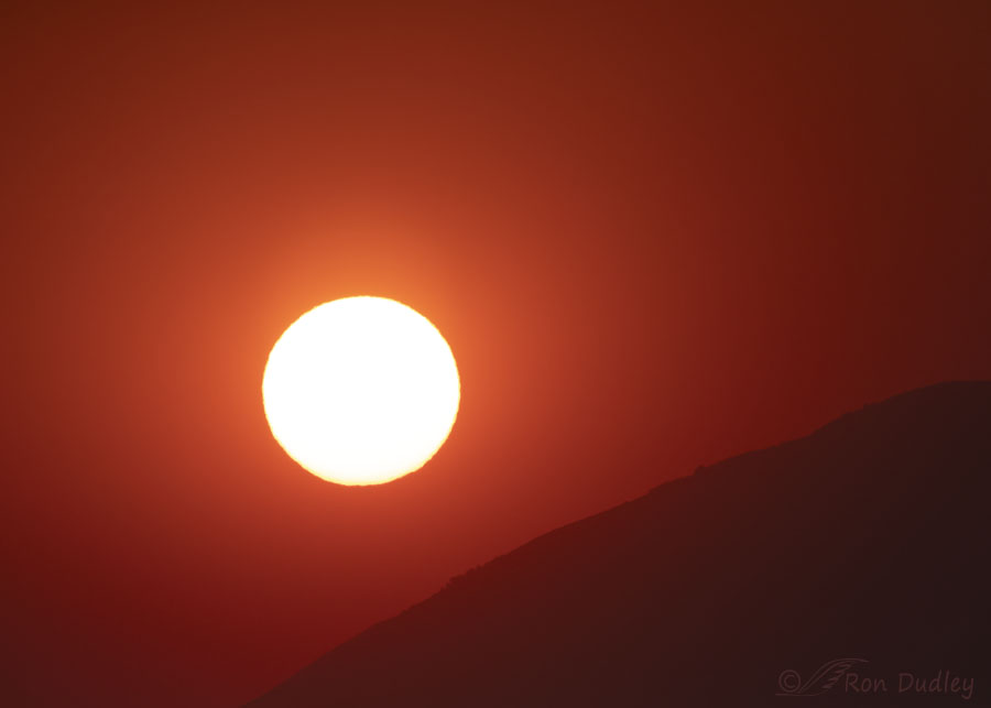 This is what sunrise looked like at 7:22 AM yesterday morning as the sun rose over the Wasatch Mountains just north of Brigham City. The smoke turned the eastern sky a fiery red and I was dealing with the effects of the smoke all morning. It interfered with my camera’s focusing, so I got a lot of soft shots. It caused a color shift in some of my photos, especially in the earliest part of the morning, and it also made getting proper exposure very difficult.