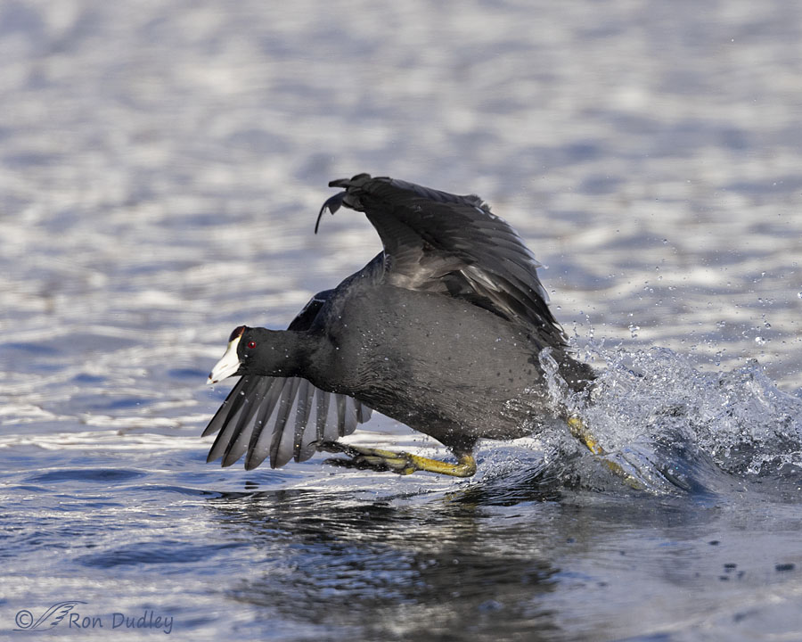 Always love seeing American Coots! I like these shots as much for the water action as the bird action. Such interesting properties packed into a tiny molecule!