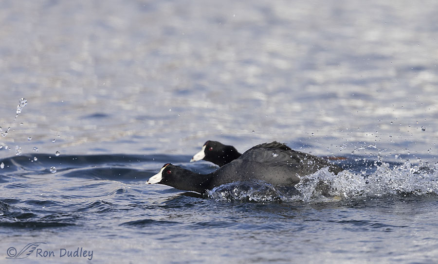 American Coots are universally described as quarrelsome and belligerent but this time of year they crank it up a notch. Or two.