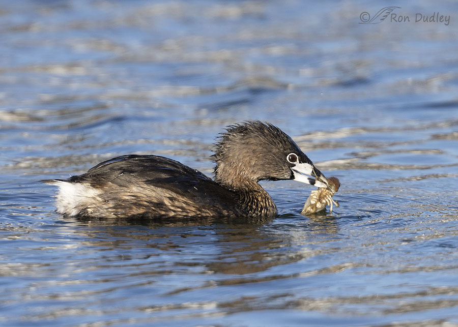 Like you, I’ve seen many Pied-billed Grebes come to the surface with a crayfish in its beak. But I agree, I have never seen a crayfish go down a grebe’s gullet with its appendages intact. A violent and quick shake does a good job of sending those pincers flying. I have single photos but not a nice series like this. I once saw a Double-crested Cormorant wait until a grebe did this shake and then move in to attempt to steal it. The grebe was too fast, diving and resurfacing a long distance away still holding its catch before swallowing it. The cormorant went back to catching bullhead which strikes me as just as hard to swallow. Those stiff, sharp spines on the pectoral fins must be hard going down but they manage without beating their prey on a branch as a kingfisher does. Great series.