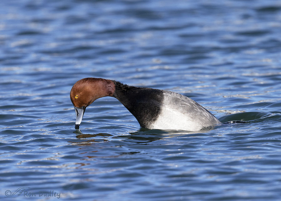 On occasion I like to photograph diving waterfowl in an attempt to capture an extended series of the behavior. I like seeing the progression of the photos in sequence, I enjoy the considerable challenge of doing it well and it’s good training for the ol’ reflexes. Two days ago I had such an opportunity with a particularly handsome and up-close Redhead drake so I accepted the challenge.