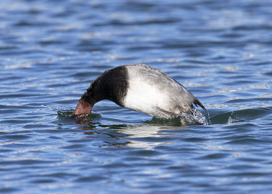 Great series. I love the arch. Great light too. Many of the diving ducks follow this pattern. I have noticed with some their back is usually turned toward the sun so they create a shadow on the water surface. I guess like us they don’t like looking into the sun and bright reflection. It makes it hard to get light on their face. I like you, try to catch that moment. I have been trying with the mergansers. Their dive and initiation is quite different. I wish they did an arch, theirs is low on the water line, the last bit you see is a tail often straight up in the air above the water. It is all very fast!