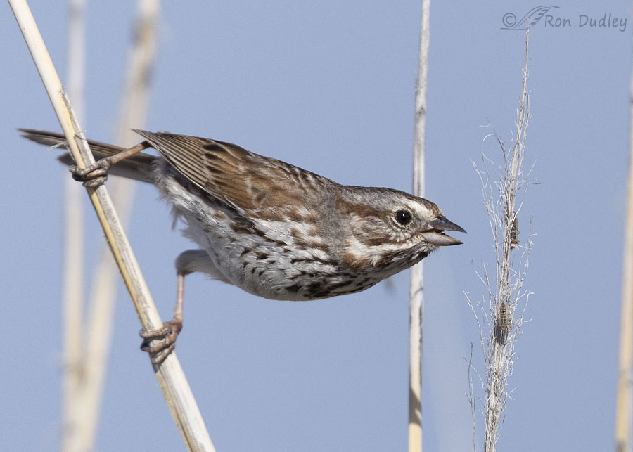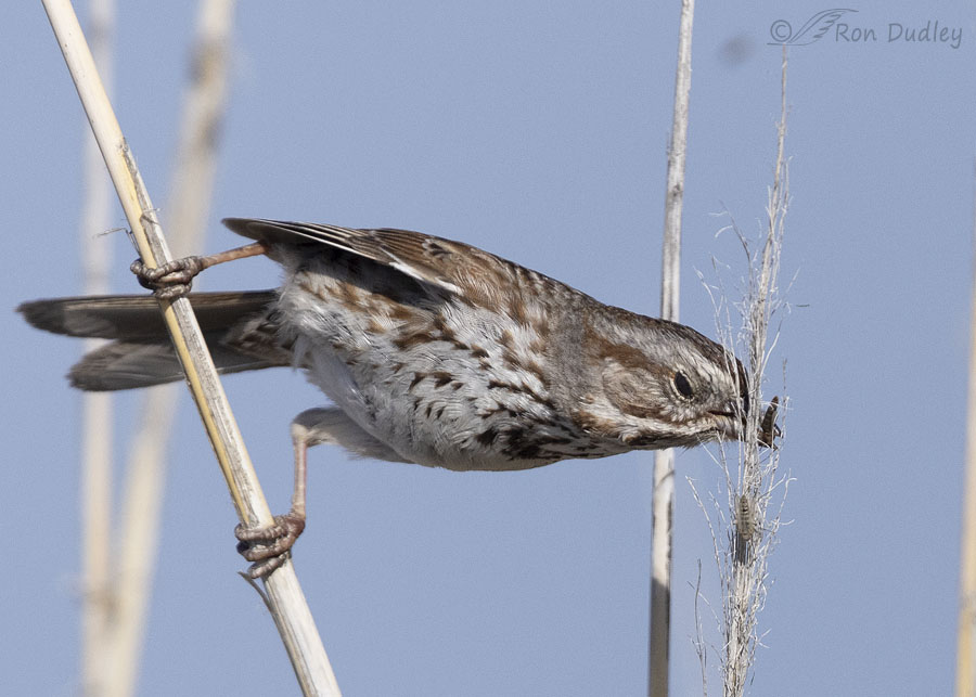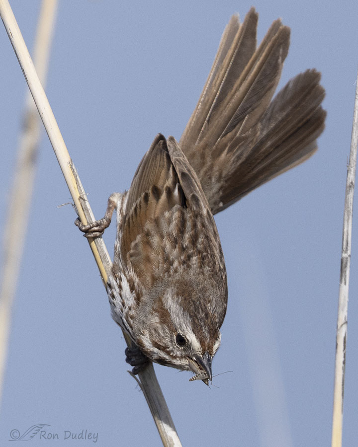 Even the Song Sparrows were having midges for breakfast. Here there are two midges attempting to hide on this bristly stem.