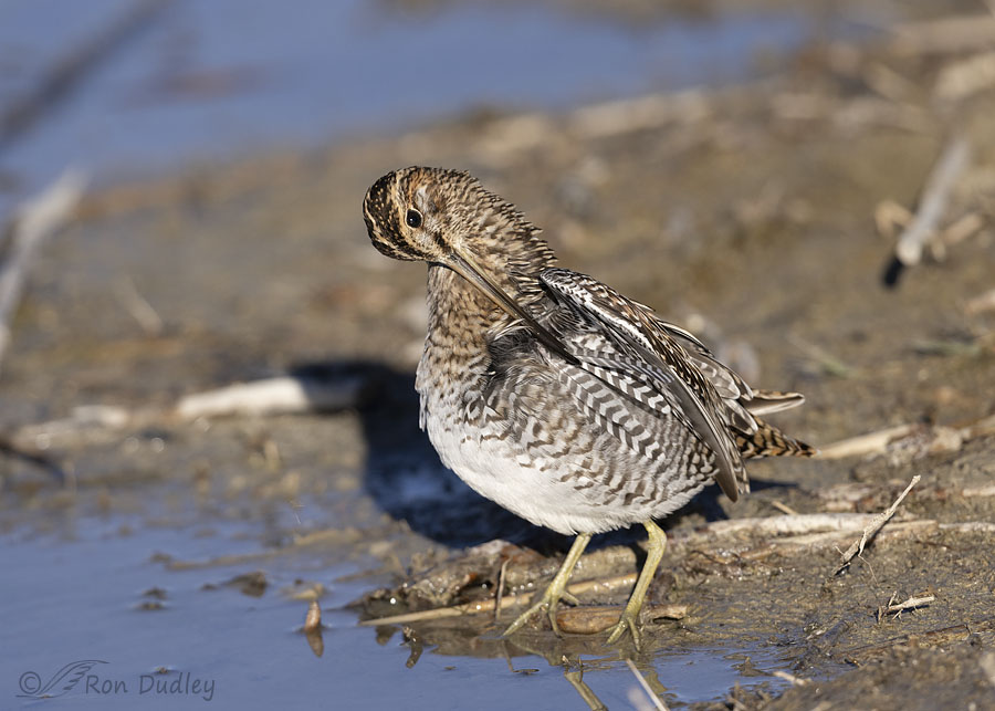 Another snipe that insisted on showing me ‘his’ preening technique up close. He worked on that one isolated feather, the one he’s grasping with the tip of his bill, for a long time.