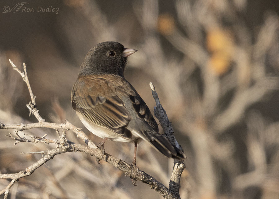 A handsome Dark-eyed Junco looking back at me. I still haven’t seen any juncos at my backyard feeder this winter but I’d much rather photograph them in the wild anyway.