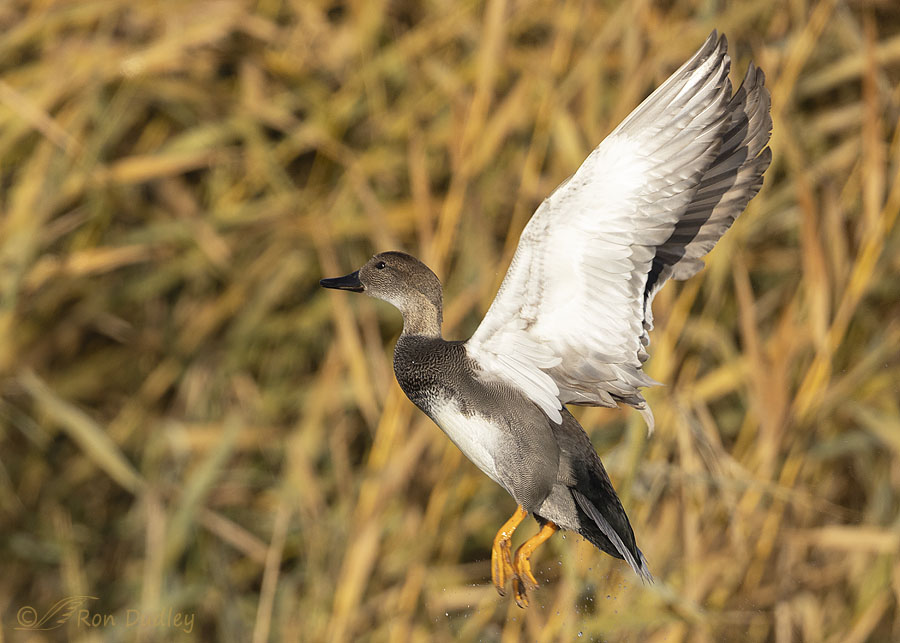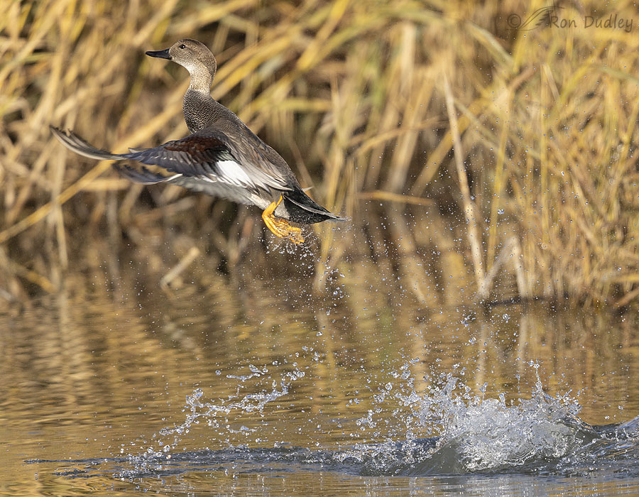 I was a little slow on the trigger when this drake Gadwall took off, so I cropped the photo to include both the bird and the water splash he made when he launched. After this shot I didn’t move my lens upward fast enough to keep him in frame, but three shots later I…
