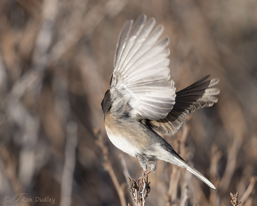 My very long trip to the west desert yesterday morning was largely unproductive, with the exception of this surprisingly cooperative Dark-eyed Junco. “He” spent about 10 seconds on this relatively isolated perch which allowed me to get quite a few shots of him. He didn’t give me many poses but considering how the rest of my morning went, I’ll take what he gave me without complaining. Much.