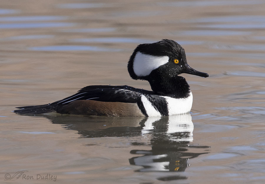 This photo of a male Hooded Merganser, taken two days ago, isn’t one I’d normally post to my blog. I like it reasonably well but I’m not a big fan of the pose, which for my tastes is a little too stiff and formal. I’d like it better if the bird’s head was turned more toward me or he was doing something interesting.