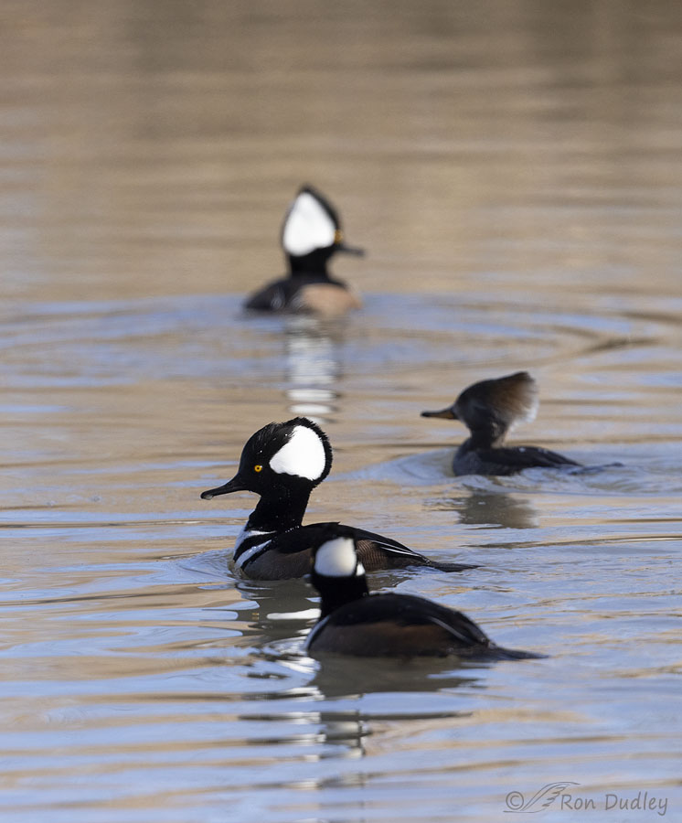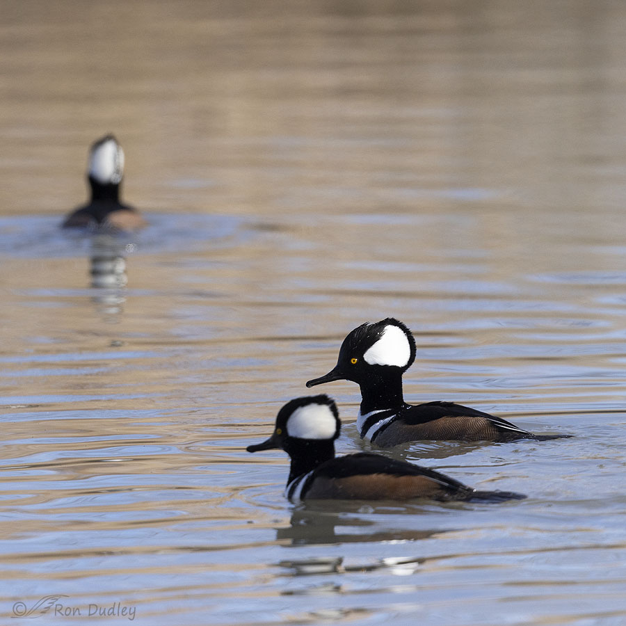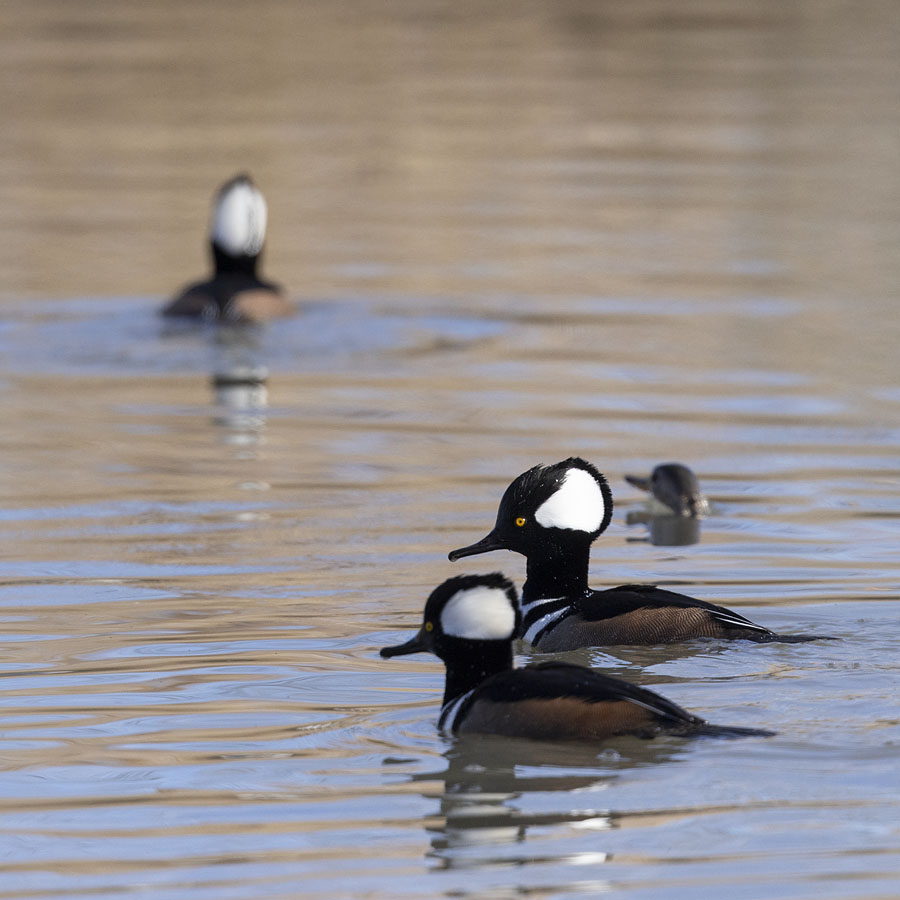 The hoods on the crested mergansers are not just ornaments they flash messages and assume different shapes and positions. Cool little waterbird.
