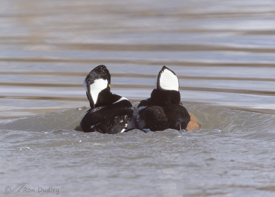 Hmmm, I wonder what that small disturbance in the water is right behind the raised crest of the top Hoodie of the pair at lower right. That disturbance wasn’t there in the previous shot in the burst.