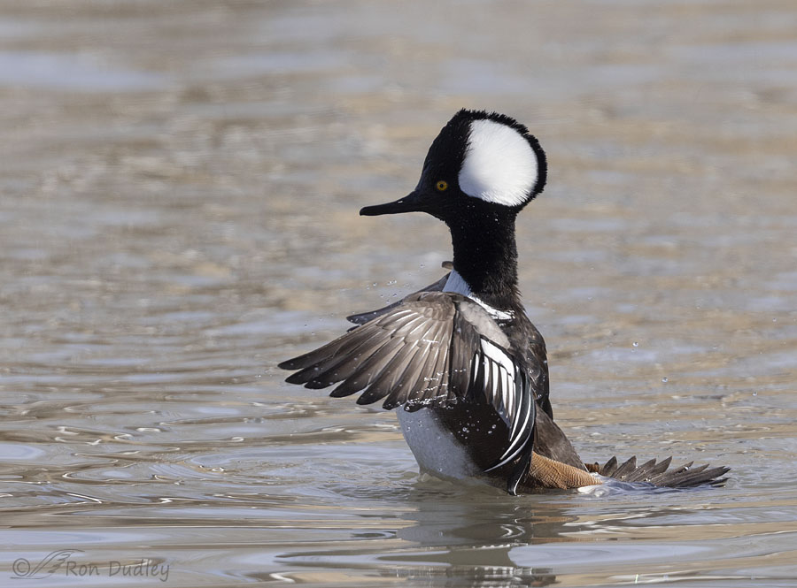 Hoodies are small ducks, which translates into speed. They spend most of their time on the surface swimming slowly from place to place while looking for a good place to dive for fish, so the photographer can be lulled into complacency. But they’re capable of incredible bursts of speed so if you’re not on your toes you’re going to miss it, whatever “it” turns out to be.