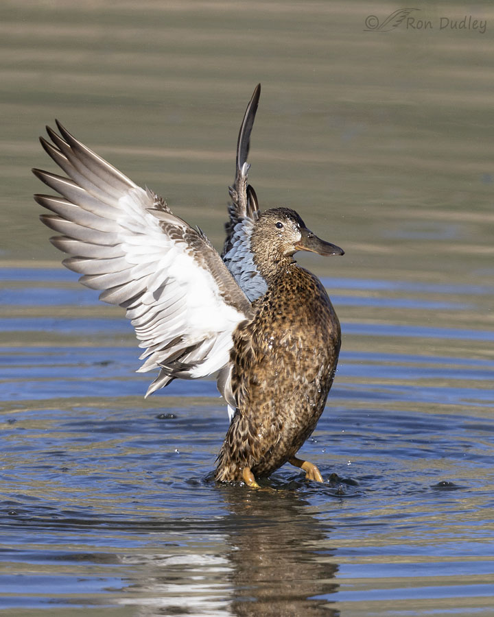 Three different and distinct times she flapped her wings. Here she was so enthusiastic about it she almost lifted completely out of the water.