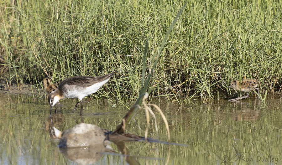 In 16 years of photographing birds I’d only seen a Wilson’s Phalarope chick once and that guy was half-grown. Three days ago at Bear River MBR I photographed phalarope chicks that were much younger.