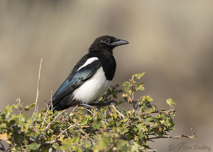 Black-billed Magpies in the city, or on Antelope Island, can be fairly tame but elsewhere around here they’re usually nearly impossible to approach. Four days ago, while I was cruising for birds in a remote area of Box Elder County, I spotted multiple family groups of magpies close to the road but each time they noisily flew off before I could get anywhere near them.