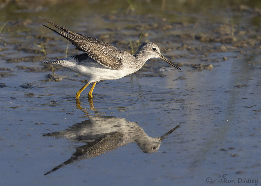 A lone Greater Yellowlegs that was foraging for food amongst a fairly large group of American Avocets. Here the bird had partially raised and then lowered its wings so quickly I didn’t even know it had occurred until I looked at my photos at home. It wasn’t much more than a wing twitch but I think it makes the photo a little more interesting.