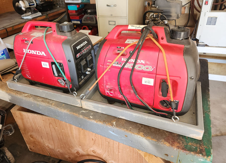 I have two Honda generators. Usually, I only carry one of them to charge my trailer batteries (the solar on the new trailer helps but it’s pretty slow). But a single generator won’t run my AC so when it’s hot I carry them both in the back of my pickup.