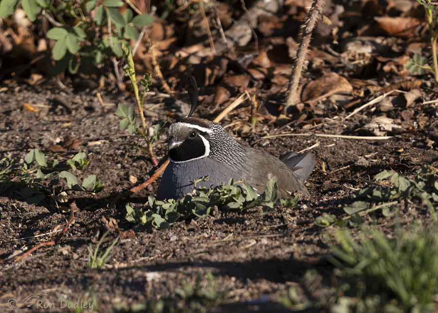Eight days ago I went down to the Jordan River, for the second day in a row, to look for the California Quail I’d found the day before. On that previous day there’d been three of them, a lone male with two females, but I never got any photos of the females and in the only photos I got of the male, he was perched in shade in a tree.