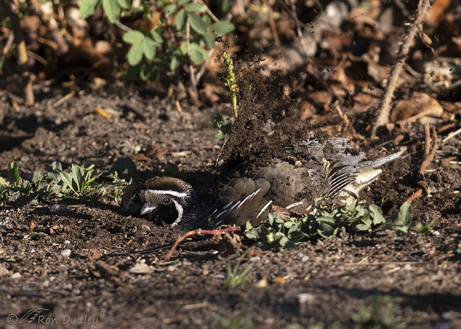 What a fascinating look into the spa habits of California Quail! We’re within their range map, according to the Cornell site, but I don’t recall ever seeing them — even while out hiking.