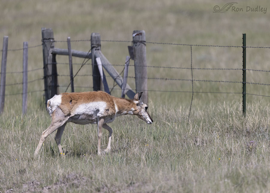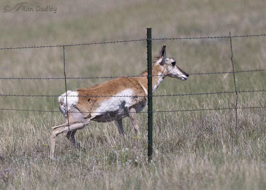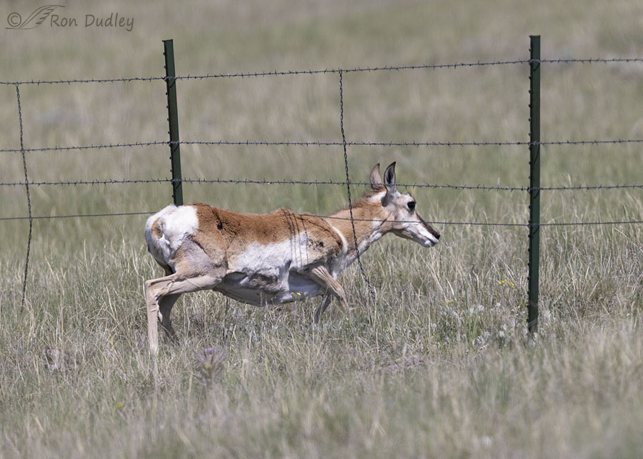 Note: Over the years I’ve literally seen hundreds of pronghorns going under or through barbed wire fences. I’ve only seen pronghorn jump a fence three times. They’re capable of doing it, they just don’t. Usually.