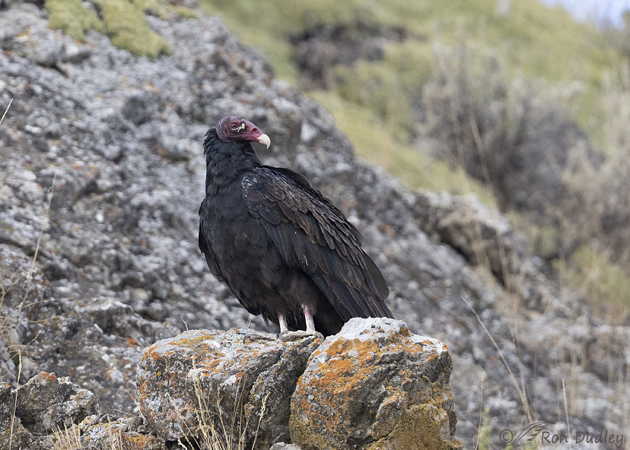 The entire area was socked in with clouds for most of the morning, including when I found this lone Turkey Vulture on the side of a cliff. I decided to take photos anyway, especially when I noticed that this bird seemed to have an unusual amount of white around ‘his’ eye.