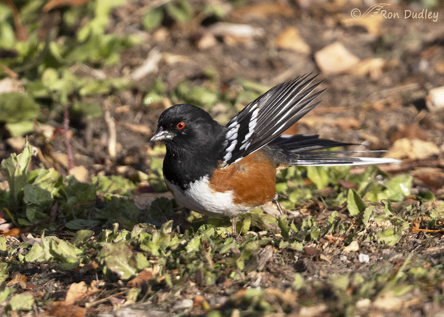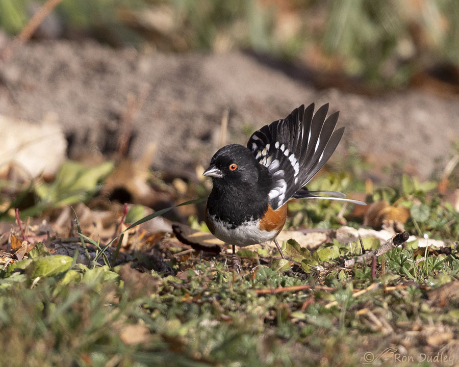 Towhees are such HANDSOME guys ! And frenetic, too–your