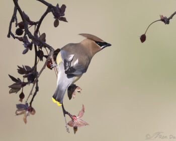 Cedar Waxwing Attempting To Eat Forbidden Fruit