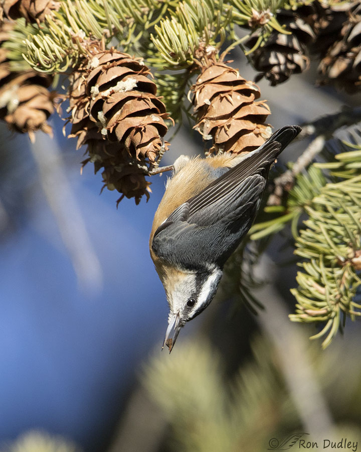 Red Breasted Nuthatches Foraging For Food Why do these nuthatches hang upside down from conifer cones? Continue reading
